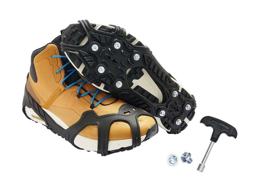 - Les crampons temporaires, qui se fixent et s’enlèvent facilement, offrent une protection supplémentaire contre les zones très glissantes – la commodité à son meilleur !