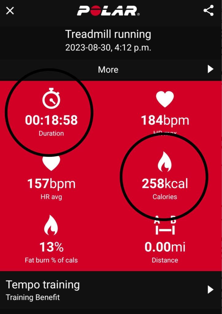 Bien que vos résultats puissent différer, vous pouvez clairement observer l’augmentation des calories brûlées avec des exercices anaérobies de haute intensité. Regardez mes résultats. Je recommande vivement l’utilisation d’un moniteur de fréquence cardiaque comme le Polar H10 pour une mesure précise de votre dépense calorique pendant l’exercice.