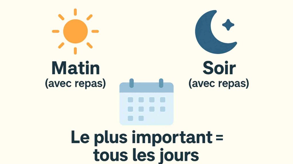 Autrement dit : Prendre tes oméga-3 avec ton petit-déjeuner ou ton souper = ton corps les utilise mieux. - La régularité est encore plus importante que le timing.